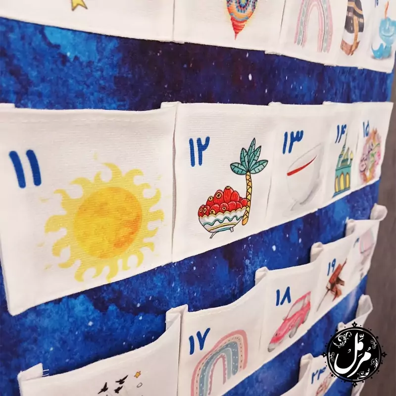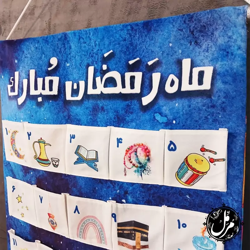 حس و حال #ماه_رمضان برای روزه اولی ها بخصوص دختران که در سنین کودکی روزه گرفتن را تجربه می کنند، بسیار هیجان انگیز است. برای اینکه کودکمان از اولین روزه خود خاطره خوش و یک یادگاری داشته باشد، می توان به او یک هدیه داد. اما تا به حال به این فکر کردید که این هدیه روزانه و کوچک باشه؟ گروه مرمل محصولی تولید کرده مناسب روزه دارهای کوچک. این محصول سی تا جیب داره که بازای هر روز ماه مبارک رمضان طراحی ده و قابلیت داره هر روز یک هدیه کوچک را در آن قرار دهید تا پس از افطار به روزه دار کوچک برسه هدیه می تواند یک هدیه غیر نقدی و یا نقدی و یا حتی یک نامه پر مهر باشد. این محصول از جنس مخمل و در ابعاد 45 در 80 سانتیمتر به صورت دو رو طراحی شده و 30 عدد جیب پارچه ای پاکتی دارد پشت این محصول تبریک عید سعید فطر است این محصول قابل شستشو و اتوکشی اشت و عمری مادام دارد! و با چوب و نخ آویز ارسال می شود