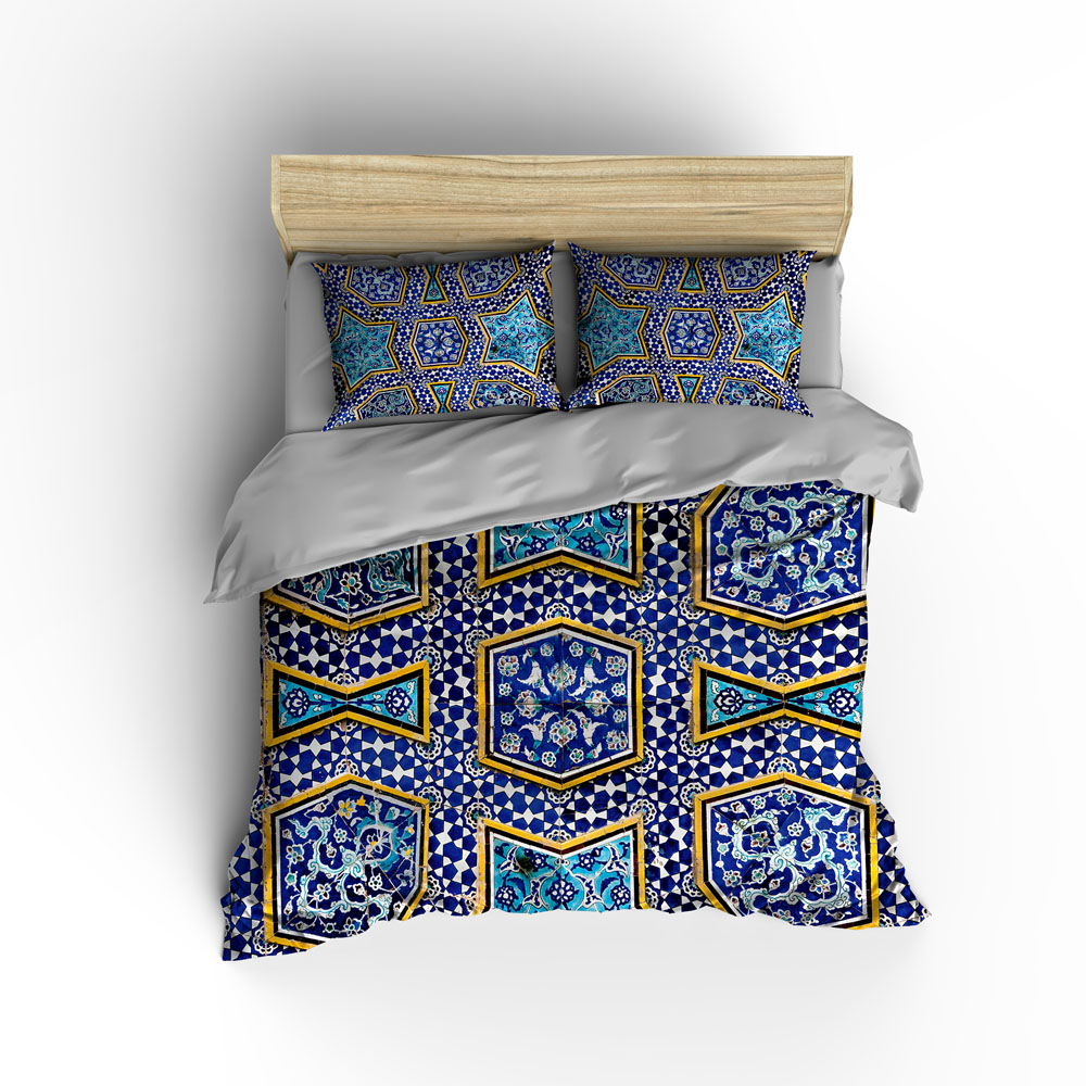 ست خواب طرح کاشی ایرانی با سایزبندی کامل کد VM3-43602