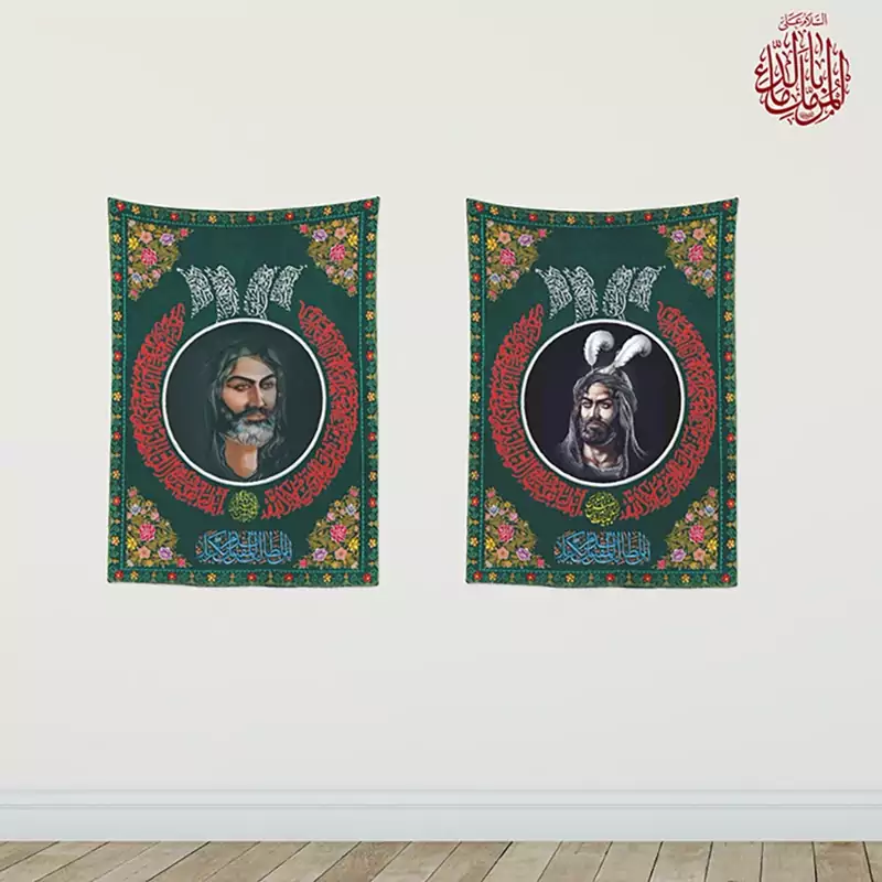 پک دو عددی کتیبه مخمل شمایل امام حسین ع و حضرت ابالفضل ع